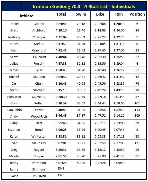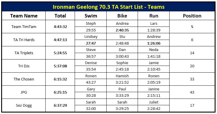 Ironman 70.3 Geelong was a huge success over the weekend. We had over 22 athletes take to the start line to compete in their age groups and a further 16 racing as part of a team. Way to represent the TA colours!!!