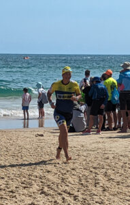 The 1.5km ocean swim presented a unique challenge, especially without a wetsuit. Despite initial anxiety, the swim turned out to be a the most comfortable leg of the race. I experienced minimal interference from other swimmers and navigated the markers easily. With a focus on technique and efficient sighting, the thoughts of not finishing the swim dispelled. To my surprise, I emerged from the ocean in an acceptable 35:24 minutes, with plenty of energy to sprint up the beach and run into transition for the next leg.