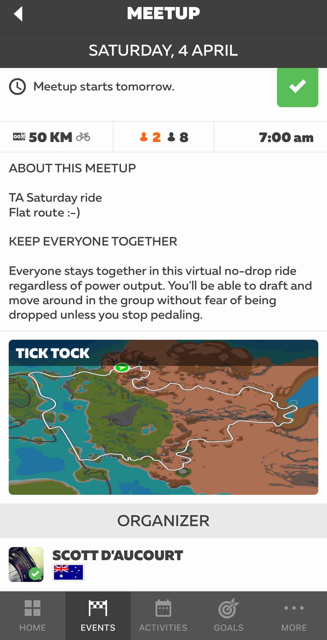 - RVSP via link sent to you in Zwift Companion