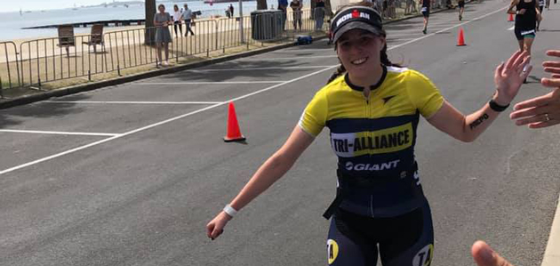 We had a 30 strong crew toeing the rolling (thanks to our sea friends) start line for a flat-as-a-tac swim that didn’t even get choppy out past the mariner, a fast and furious bike with most of our athletes avoiding the trials and tribulations that inundated many, and a hot run made all the better by a sea of blue and yellow cheering at all ends of the undulating course.