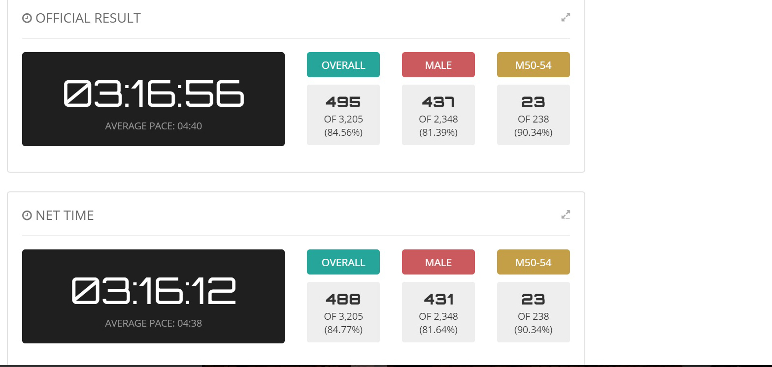 Mario Staffieri – 42kms in 3:16:12, finishing 23rd in his AG out of 238 lads!