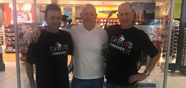 What a fantastic day. Completing my first full Ironman together with my son Daniel completing his first half Ironman. A day that went perfectly to plan. Nutrition, hydration both working to a tee. The day saw our 3.8 k swim at palm cove where the water was reasonably calm. Our 180 k bike ride then took us to two return laps to Port Douglas finishing in Cairns with our 42 k run. My estimated time was 13 hours so when I came in at 11:41 I was stoked. Daniel completing his half distance in around 6:15. Thank you to all for sending messages of support and helping me to achieve this. Special thanks to my training buddies who I have spent the best part of a year training day in day out with Ashley Purcell Michael Gallagher Juliet Cooper. Big thanks to the Trialliance coaches Ollie Allan, Scott D’Aucourt, Dan Weekes for all your help and patience. Thank you to Andy Wood-Rich and Jo Wood-Rich for turning up in Cairns to help and support us. Huge thanks to Greg Nugent, who has coached me through good and bad to reach this point. 3 months ago trying to recover from my bike accident, you held me back until the time was right to ease back into it and you then turned a 6 month build into 13 weeks from hardly walking to an Ironman, I am extremely greatful. Thank you to my family for listening to me crap on about run times and swim strokes and bike cadence etc. the biggest thanks of all goes to my wife Karen. You have stuck by me throughout this journey, always encouraging me,always positive, never doubting me, always ready with a special meal or a sticky note with a smiley face on it on my dinner when I got home from training. Following me to Busselton and now Cairns to watch me compete and for always being there for me when I needed someone to listen and understand, I thank you and love you dearly. Will I do this again? Not in the near future but never say never. This was a long and difficult journey but running down the finishers chute with the crowd and your friends cheering, then crossing the finish line and having my wife put the medal around my neck and my son putting the finishers towell on me was an experience that I will never forget.
